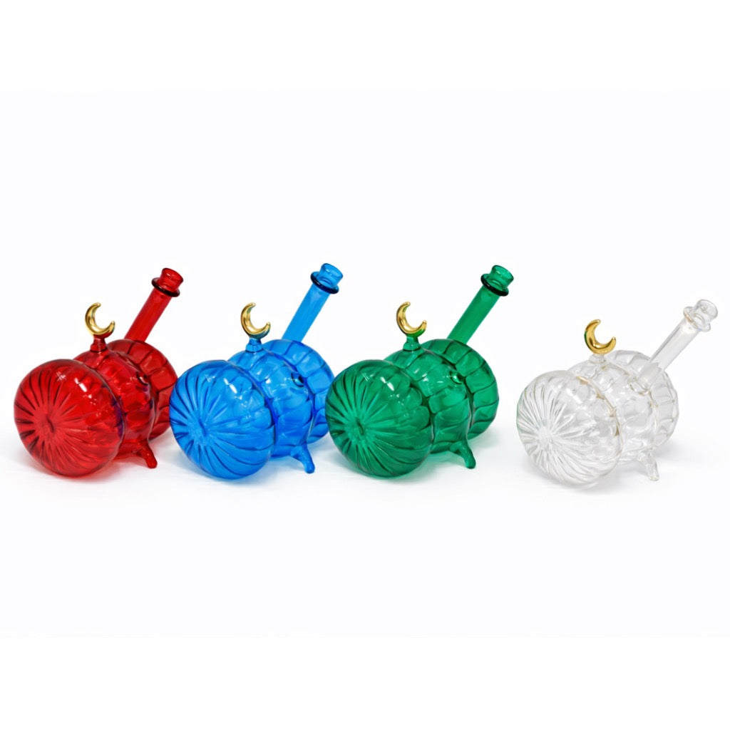 Egyptian blown glass Ramadan themed table ornament. Measures 17 x 11 cm.