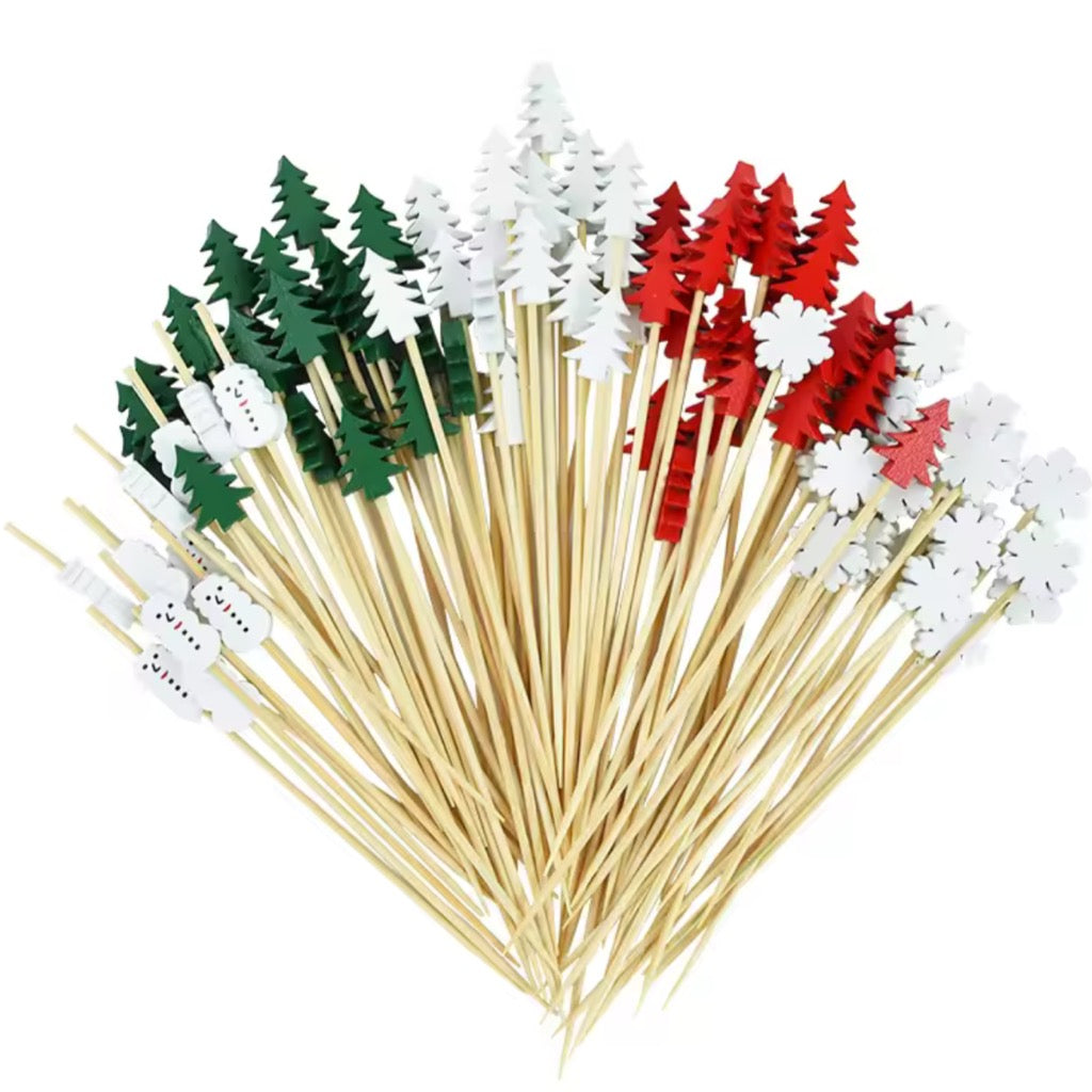 Pack of 50 bamboo sticks topped off with multicolored Christmas themed tip.