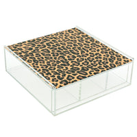 Premium plexiglass tray with tiger print handle details. Measures 31 x 21 cm.