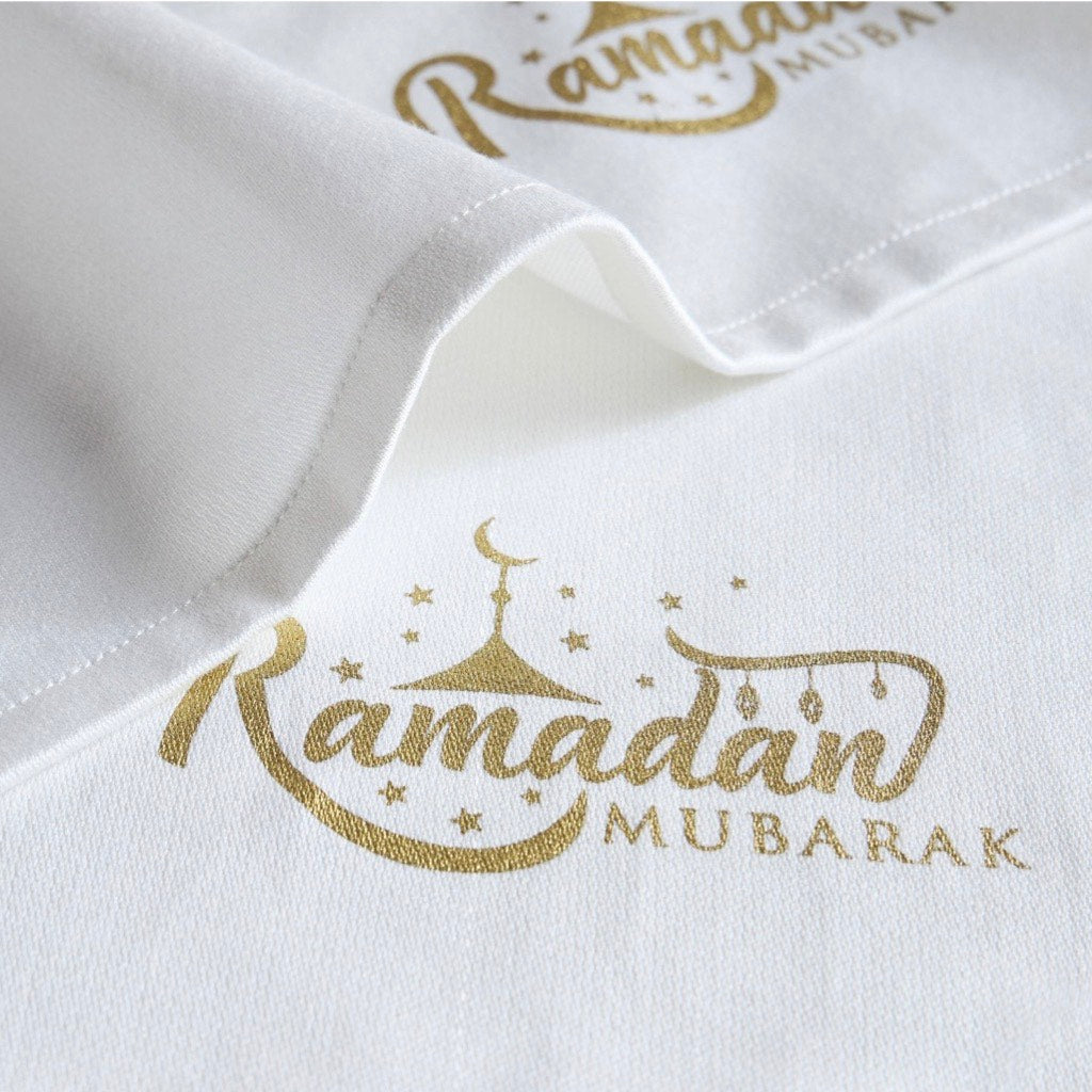 45 x 45 cm set of four fabric table napkins with Ramadan Mubarak imprint.ย
