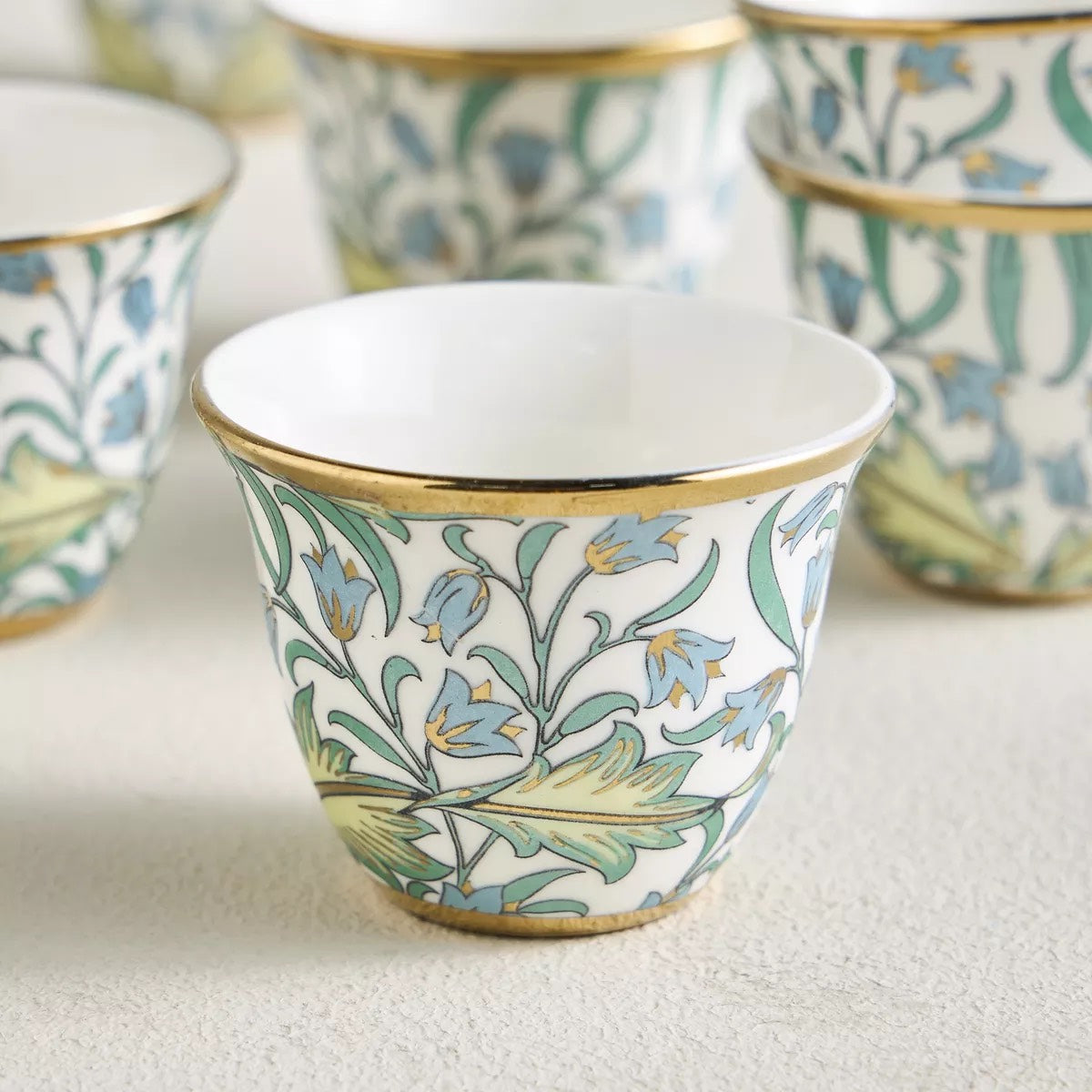 Set of six Arabic coffee cups in porcelain. Hand wash preferred.