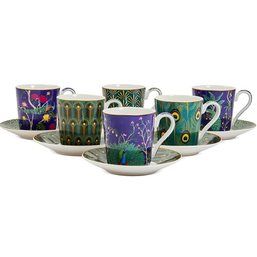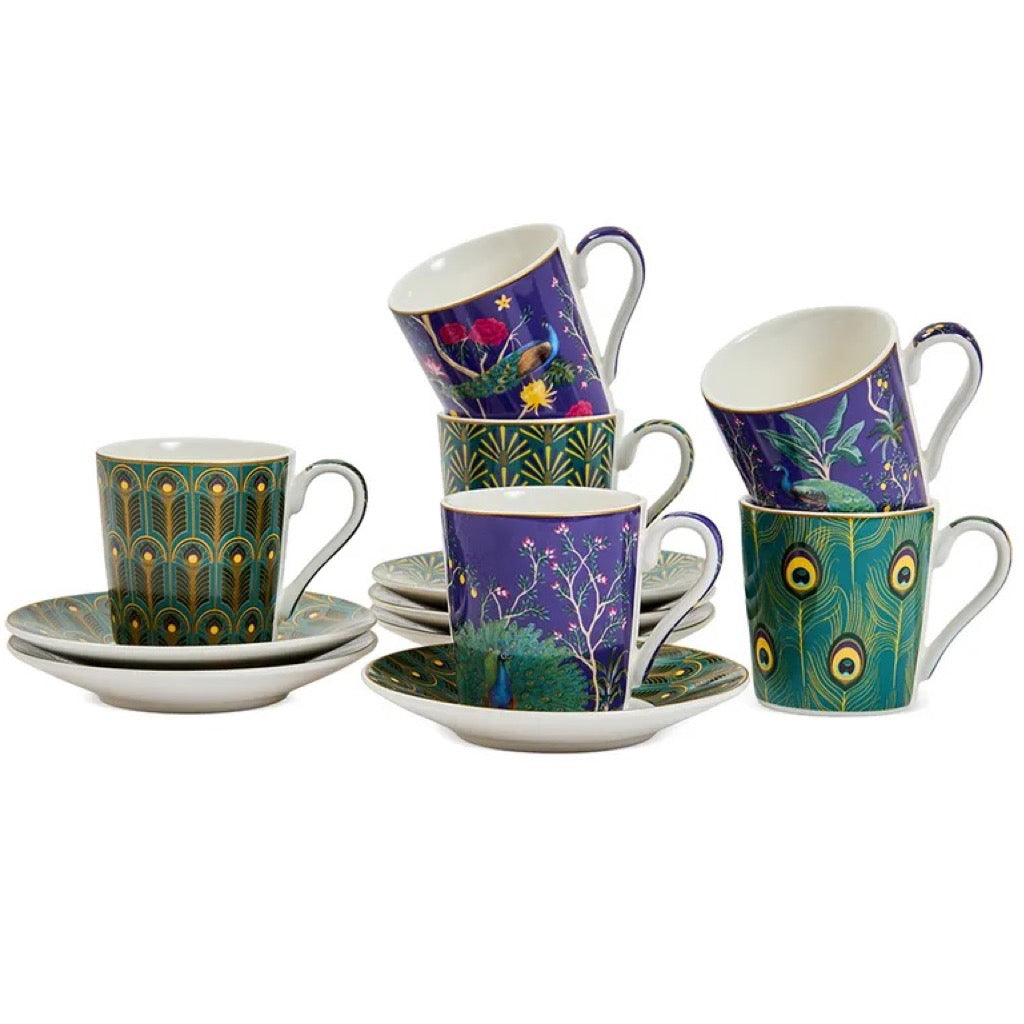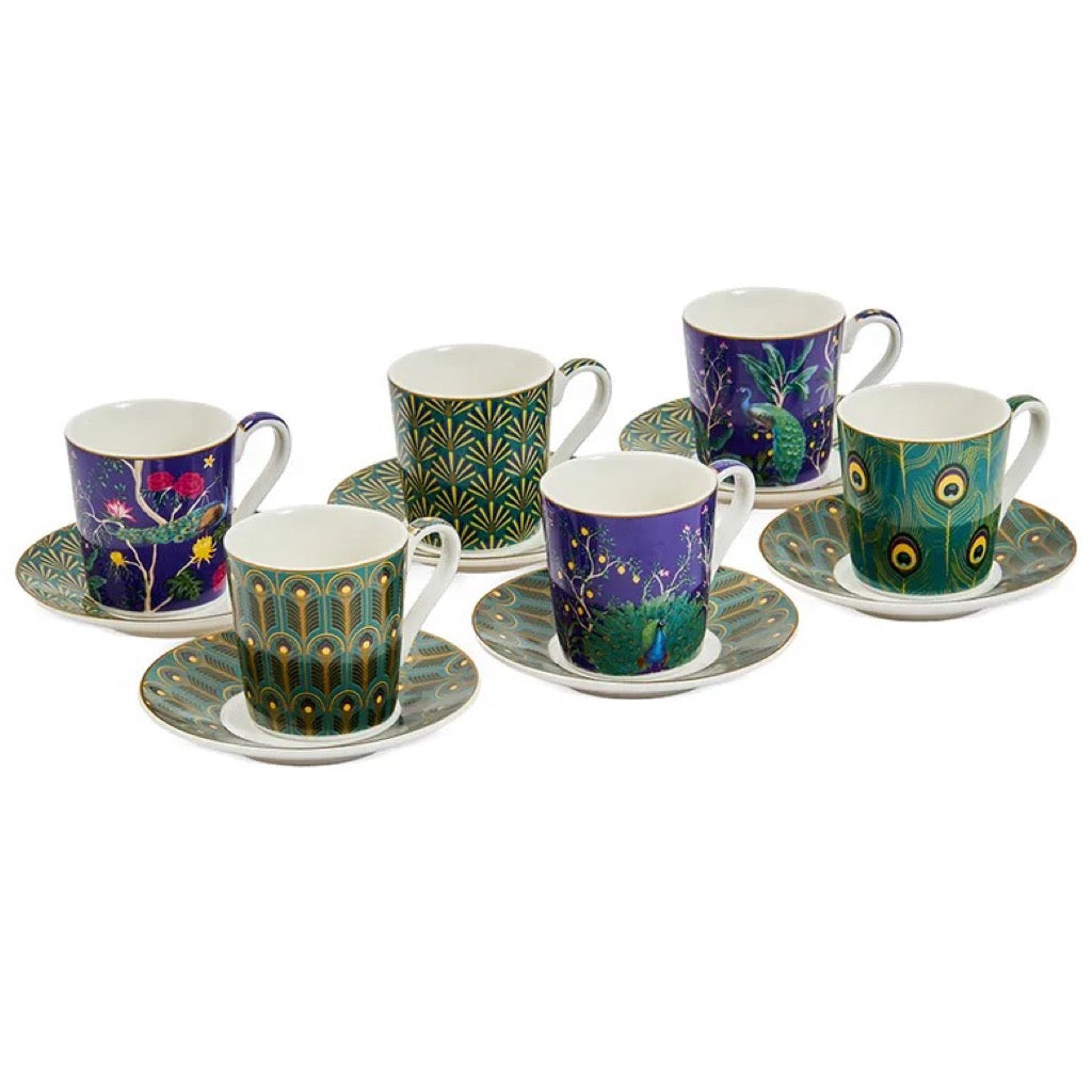 Set of six Italian made porcelain espresso/Turkish coffee cups and saucers, in a matching print box. Each cup is 100 ml each.