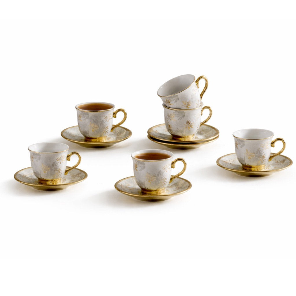 Set of six Espresso (also suitable for Turkish coffee) cups and saucers. Hand wash preferred.