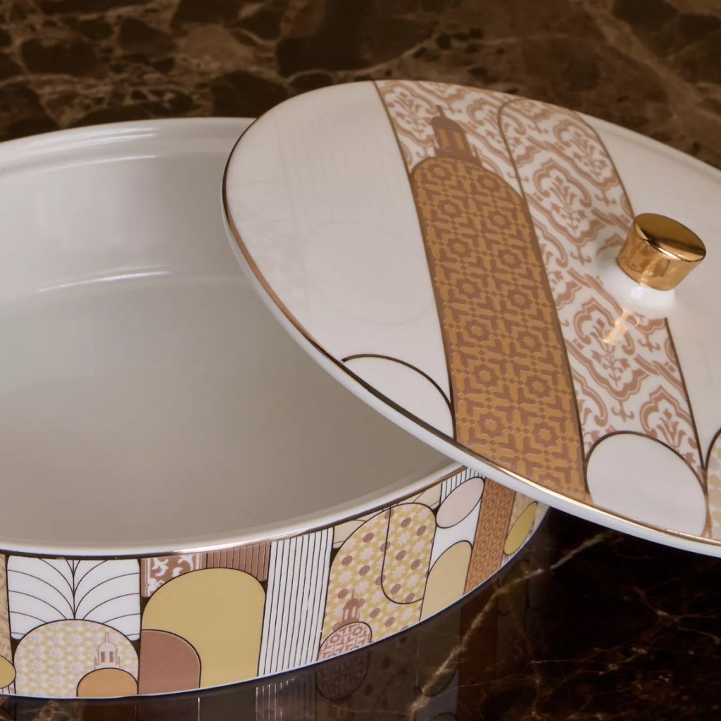 Premium porcelain 21 cm chocolate and dates serving with cover.ย