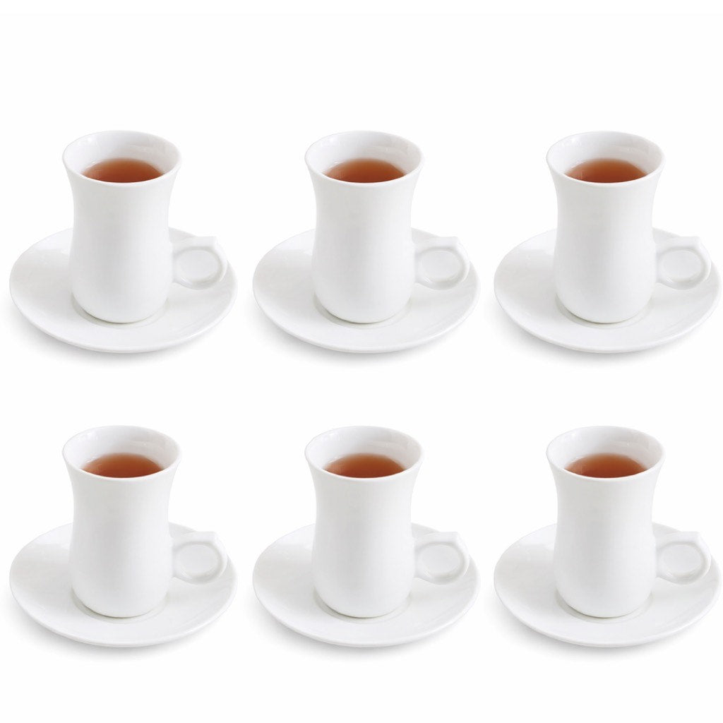 Set of six 120 ml porcelain istikana cup and matching saucer.