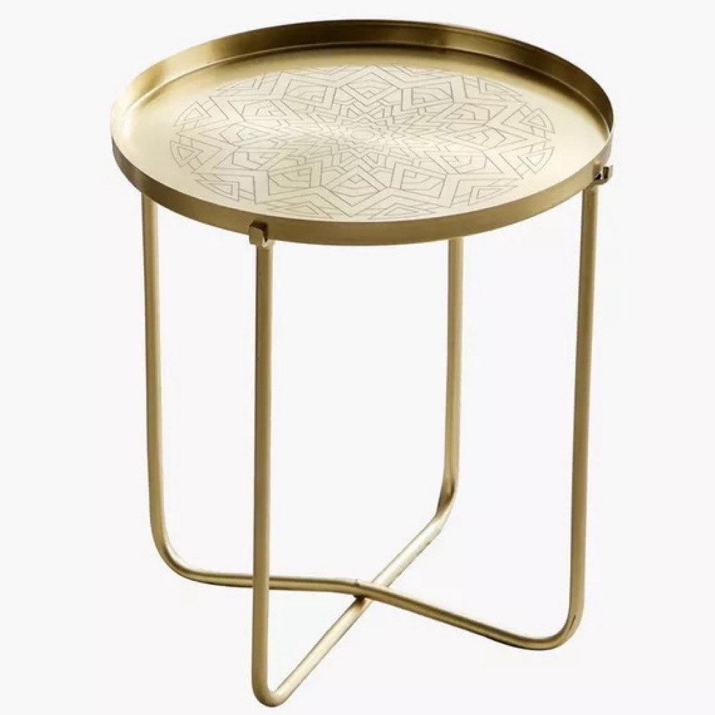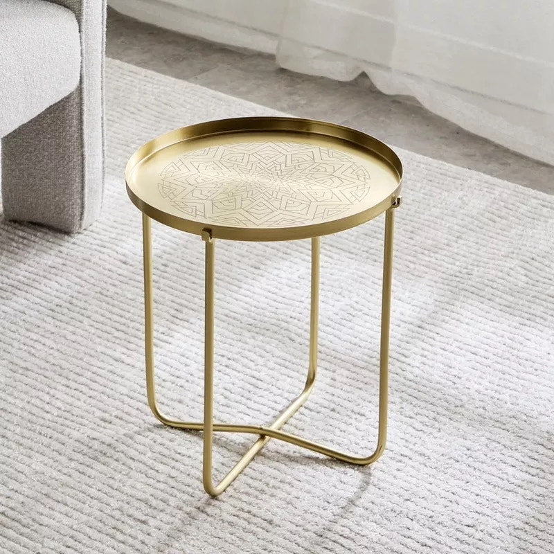 40 cm stainless steel engraved tray, placed beautifully on a 45 cm (H) metal legs, creating this perfectly Arabian tray table.ย